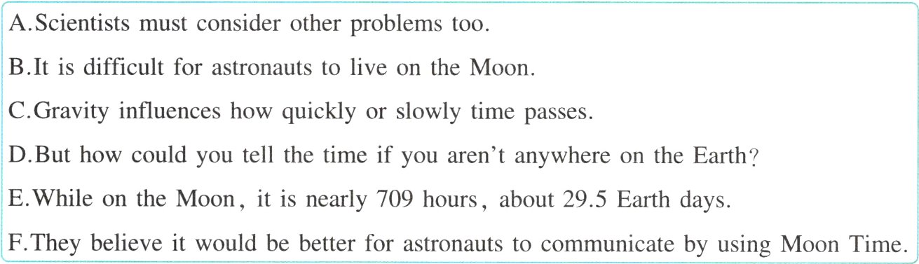 Scientists are now thinking of creating a lunar(月球的) time zone. 2 At the moment, astronauts are using time zones of their own countries. But there could be safety problems caused by the differences in time - telling.