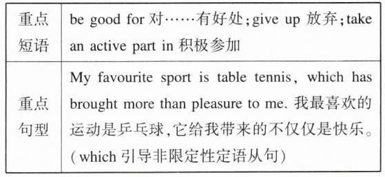 My favourite sport is table tennis, which has brought more than pleasure to me. Playing table tennis makes me strong and healthy. Especially, it is good for my eyes. It also helps me relax and reduce my daily stress. What's more, I'm brave enough through playing this game, so I never give up when I face difficulties.