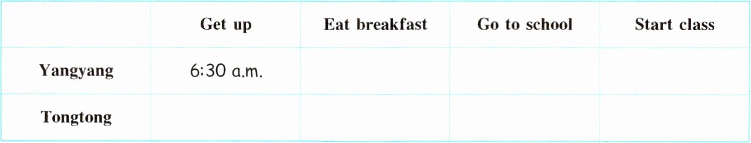 Yangyang: I get up at 6:30. What about you, Tongtong?