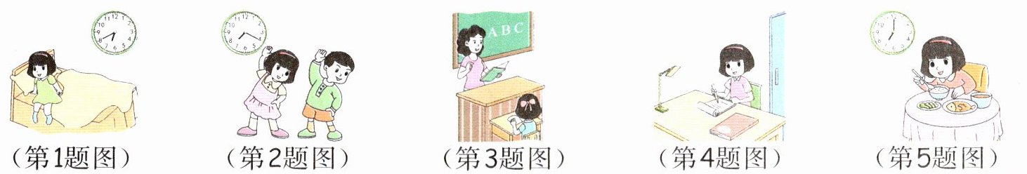 get up@@do morning exercises@@have an English class@@do homework@@7 o'clock/7:00 p.m.