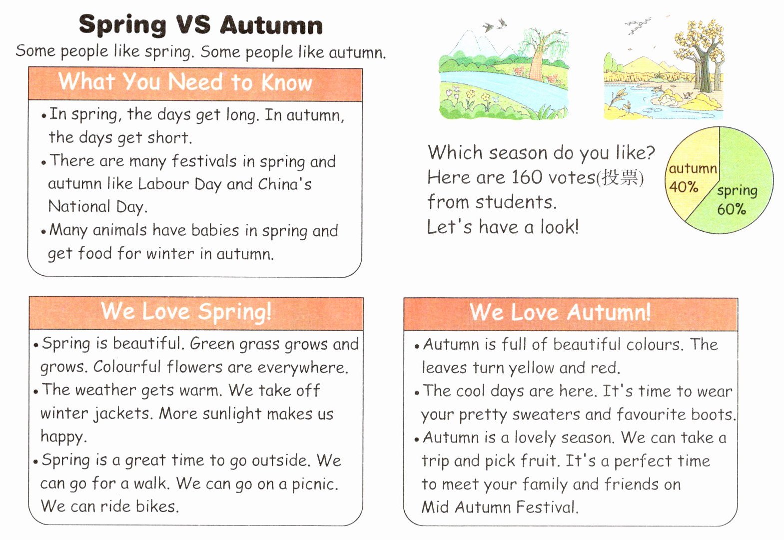 三 (温州真题)你喜欢春天还是秋天?阅读材料,选择正确的答案。