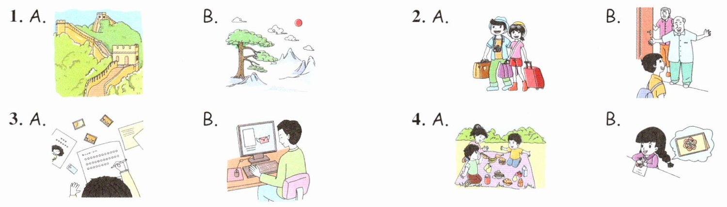 - 同学们正在介绍自己的假期计划。听录音,圈出与所听内容相符的图片的序号。