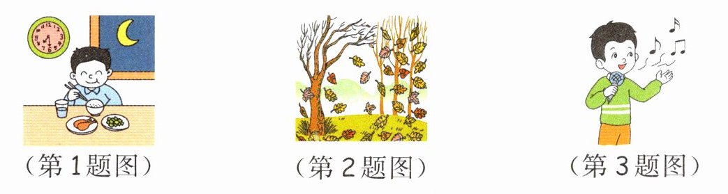 When do you usually eat dinner?@@Which season do you like best?@@I'll sing songs/a song at the party.