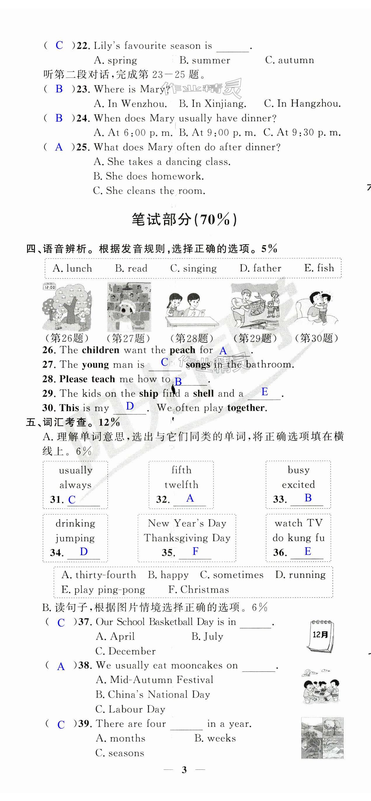 注:目前有些书本章节名称可能整理的还不是很完善,但都是按照顺序排列的,请同学们按照顺序仔细查找。练习册 2025年阳光同学课时全优训练五年级英语下册人教版浙江专版 答案主要是用来给同学们做完题方便对答案用的,请勿直接抄袭。