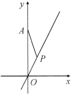 过$A$点作$AM\perp AP$交$y = kx$于$M$点,作$PE\perp y$轴,$MF\perp y$轴,垂足分别为$E$、$F$,证$\triangle PAE\cong\triangle AMF\Rightarrow PE = AF$,$AE = MF$。设$AE = m$,则$MF = m$,$M(m,3 + m)$,$\therefore 3 + m = 2m$,$m = 3$,$\therefore A(0,5)$。