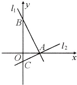 9.如图,过点$A(2,0)$的两条直线$l_1$,$l_2$分别交$y$轴于点$B$,$C$,其中点$B$在原点上方,点$C$在原点下方,已知$AB = \sqrt{13}$.