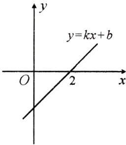 6.如图,直线$y = kx + b$与$x$轴的交点为$(2,0)$,则方程$kx + b = 0$的解为________.