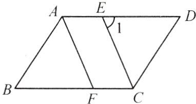 ∵AB = CD,∠B = ∠D,∠AFB = ∠BCE = ∠1,