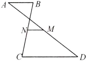 (1)连$BM$并延长交$CD$于点$F$,易证$\triangle ABM\cong\triangle DFM$,$\therefore BM = MF$,$DF = AB$,$\therefore MN// CD$;