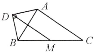 3.如图,在△ABC中,点M为BC的中点,AD为△ABC的外角平分线,且AD⊥BD,求证:MD = $\frac{1}{2}(AB + AC)$.