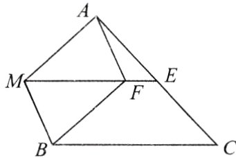 1.如图,$\square AMBF$,对角线$MF$延长线交$AC$于点$E$,点$E$为$AC$的中点,$MF = 5$,$BC = 8$,求$EF$的长.