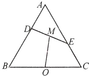3.如图,已知等边$\triangle ABC$,点$D$、$E$分别为边$AB$、$AC$上的点,且$BD = 4$,$CE = 2$,点$O$为$BC$中点,点$M$为$DE$中点,求$OM$的长.