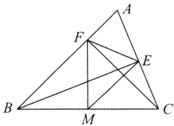 12.如图,$BE$,$CF$分别是$\triangle ABC$的高,$M$为$BC$的中点.若$\angle ACB = 60^{\circ}$,$\angle ABC = 50^{\circ}$,求$\angle EMF$的度数.