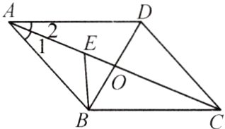 (1)$\because\square ABCD$,$\angle 1=\angle 2=\angle ACB$,$\therefore AB = BC$,$\therefore$四边形$ABCD$为菱形;
