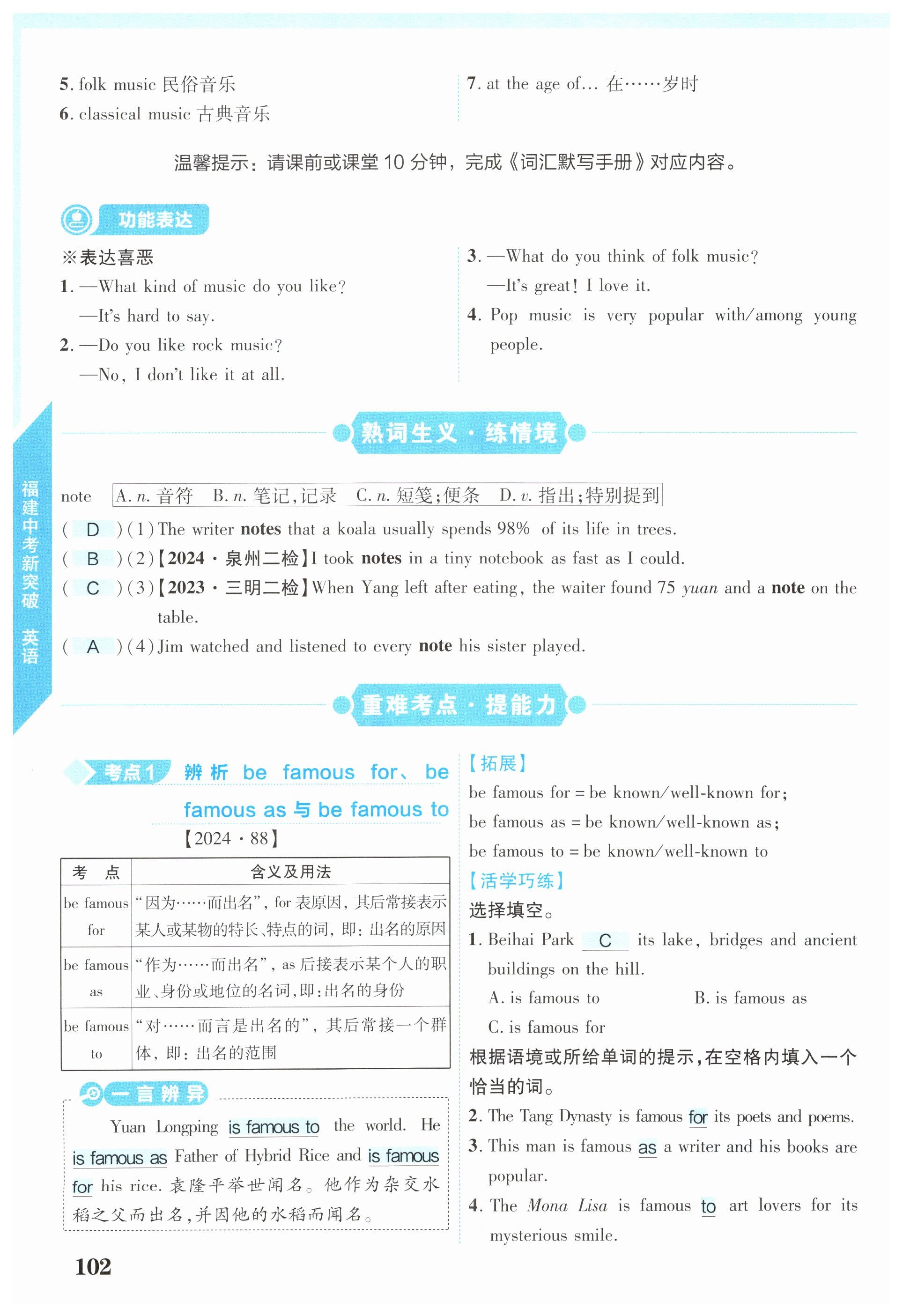 注:目前有些书本章节名称可能整理的还不是很完善,但都是按照顺序排列的,请同学们按照顺序仔细查找。练习册 2025年中教联中考新突破英语福建专版 答案主要是用来给同学们做完题方便对答案用的,请勿直接抄袭。