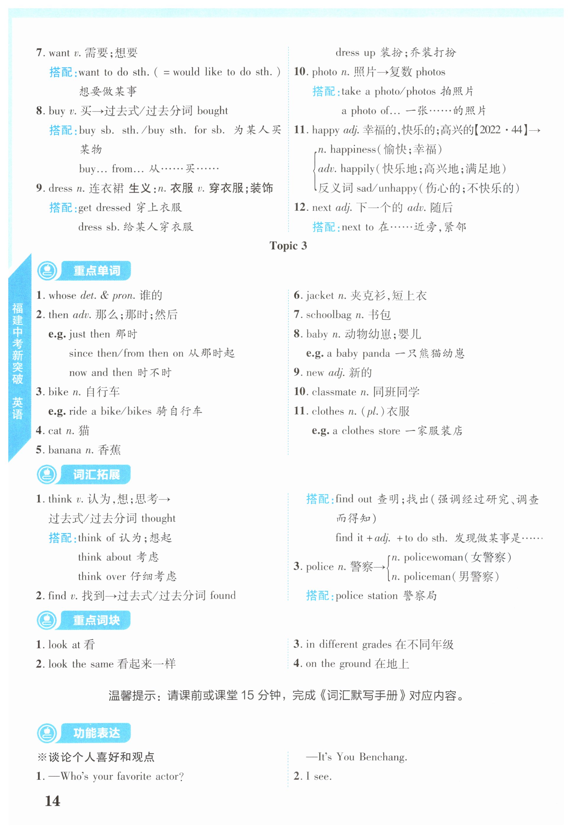 注:目前有些书本章节名称可能整理的还不是很完善,但都是按照顺序排列的,请同学们按照顺序仔细查找。练习册 2025年中教联中考新突破英语福建专版 答案主要是用来给同学们做完题方便对答案用的,请勿直接抄袭。