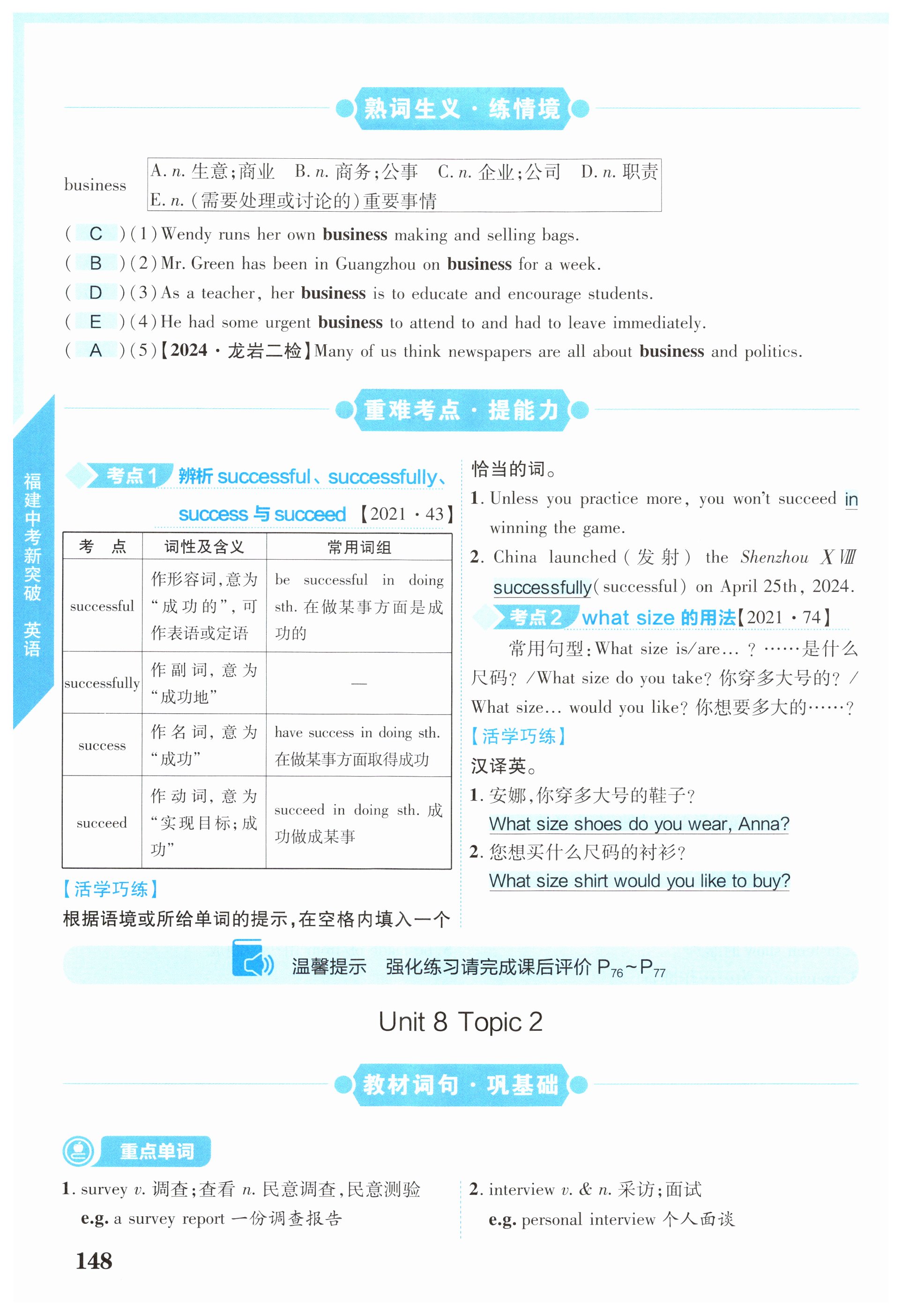 注:目前有些书本章节名称可能整理的还不是很完善,但都是按照顺序排列的,请同学们按照顺序仔细查找。练习册 2025年中教联中考新突破英语福建专版 答案主要是用来给同学们做完题方便对答案用的,请勿直接抄袭。