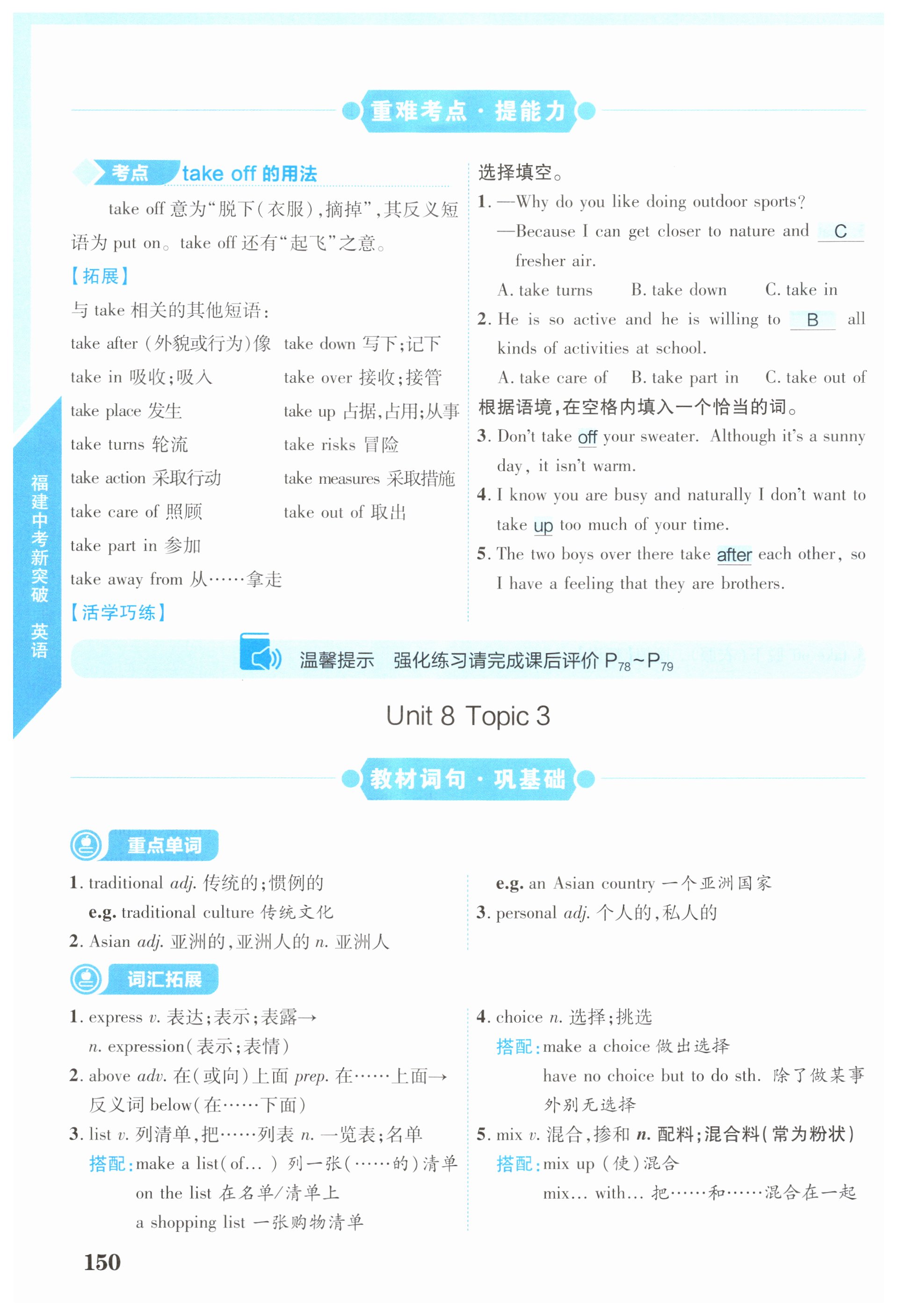 注:目前有些书本章节名称可能整理的还不是很完善,但都是按照顺序排列的,请同学们按照顺序仔细查找。练习册 2025年中教联中考新突破英语福建专版 答案主要是用来给同学们做完题方便对答案用的,请勿直接抄袭。