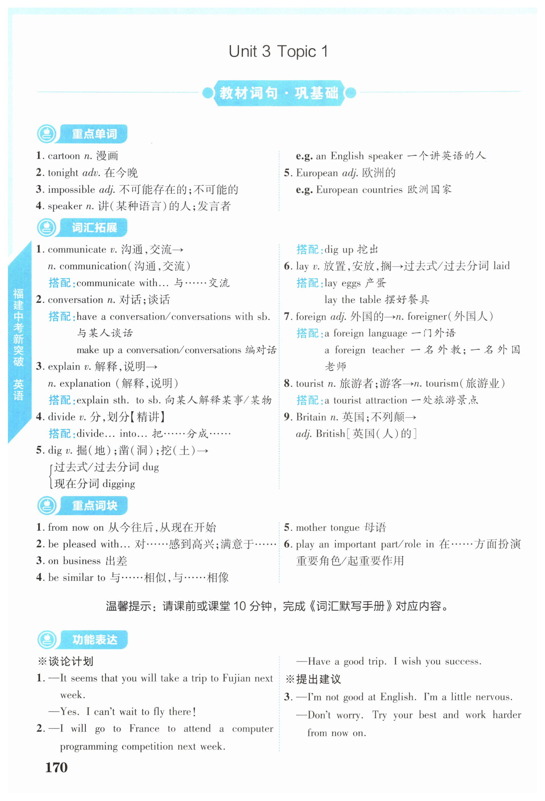 注:目前有些书本章节名称可能整理的还不是很完善,但都是按照顺序排列的,请同学们按照顺序仔细查找。练习册 2025年中教联中考新突破英语福建专版 答案主要是用来给同学们做完题方便对答案用的,请勿直接抄袭。