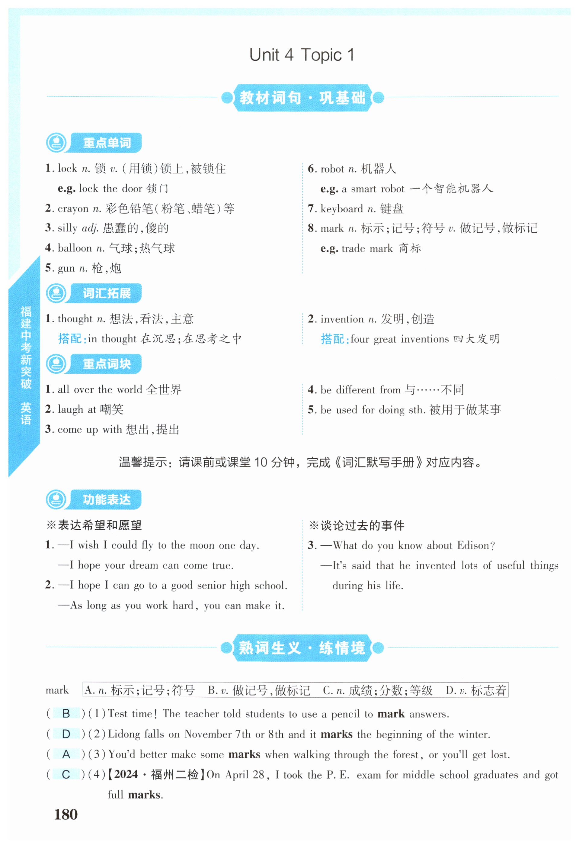 注:目前有些书本章节名称可能整理的还不是很完善,但都是按照顺序排列的,请同学们按照顺序仔细查找。练习册 2025年中教联中考新突破英语福建专版 答案主要是用来给同学们做完题方便对答案用的,请勿直接抄袭。