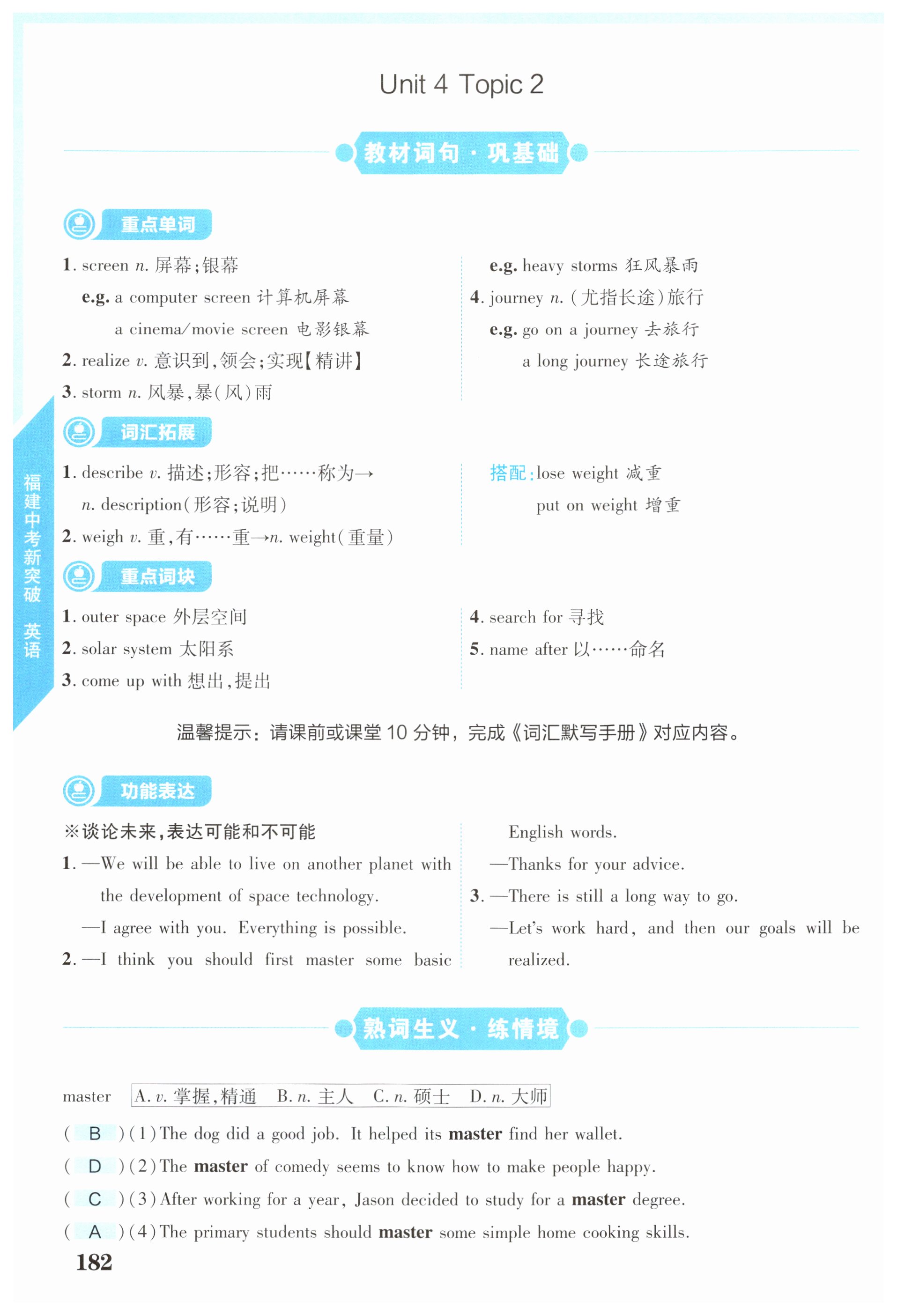 注:目前有些书本章节名称可能整理的还不是很完善,但都是按照顺序排列的,请同学们按照顺序仔细查找。练习册 2025年中教联中考新突破英语福建专版 答案主要是用来给同学们做完题方便对答案用的,请勿直接抄袭。