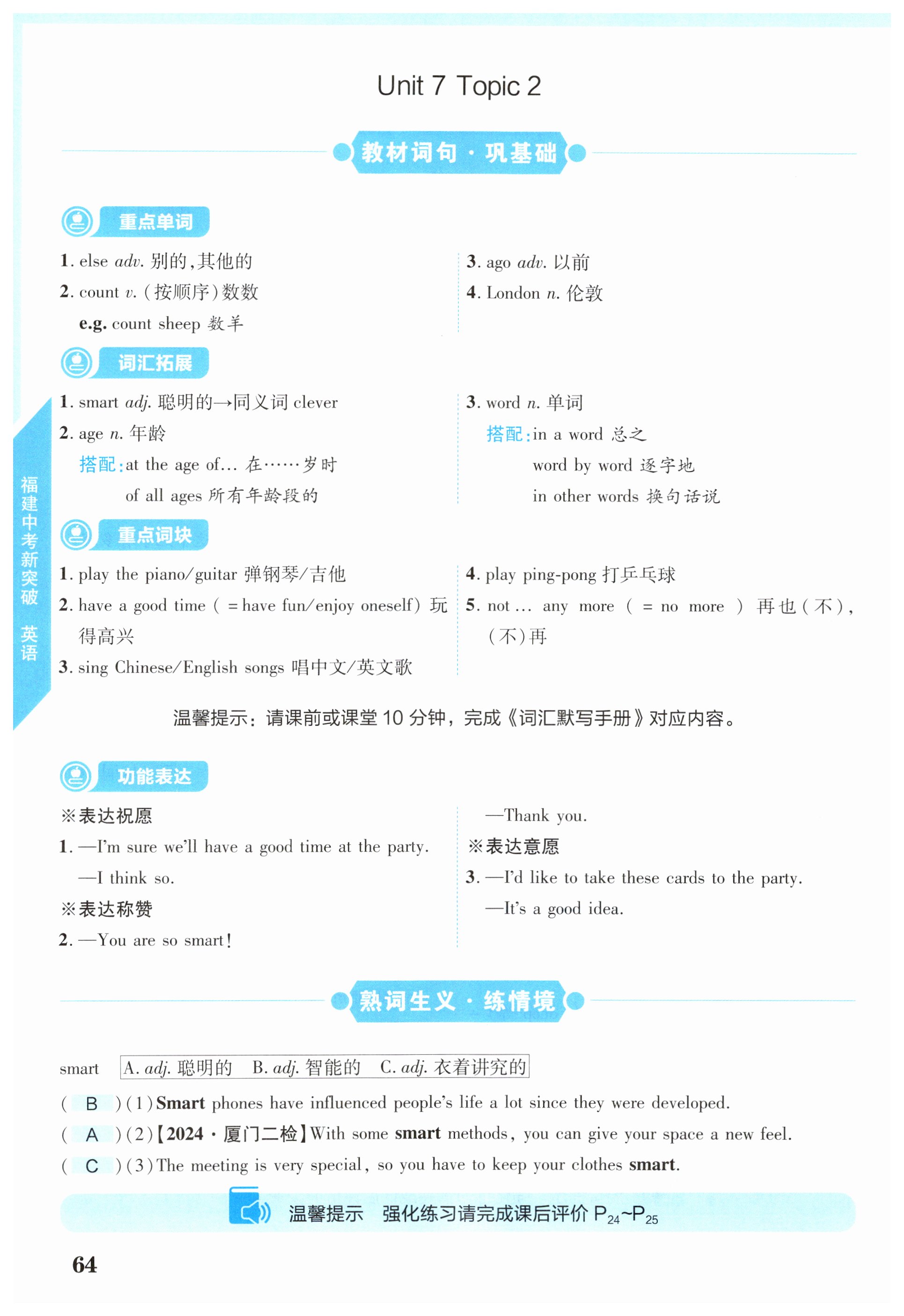 注:目前有些书本章节名称可能整理的还不是很完善,但都是按照顺序排列的,请同学们按照顺序仔细查找。练习册 2025年中教联中考新突破英语福建专版 答案主要是用来给同学们做完题方便对答案用的,请勿直接抄袭。