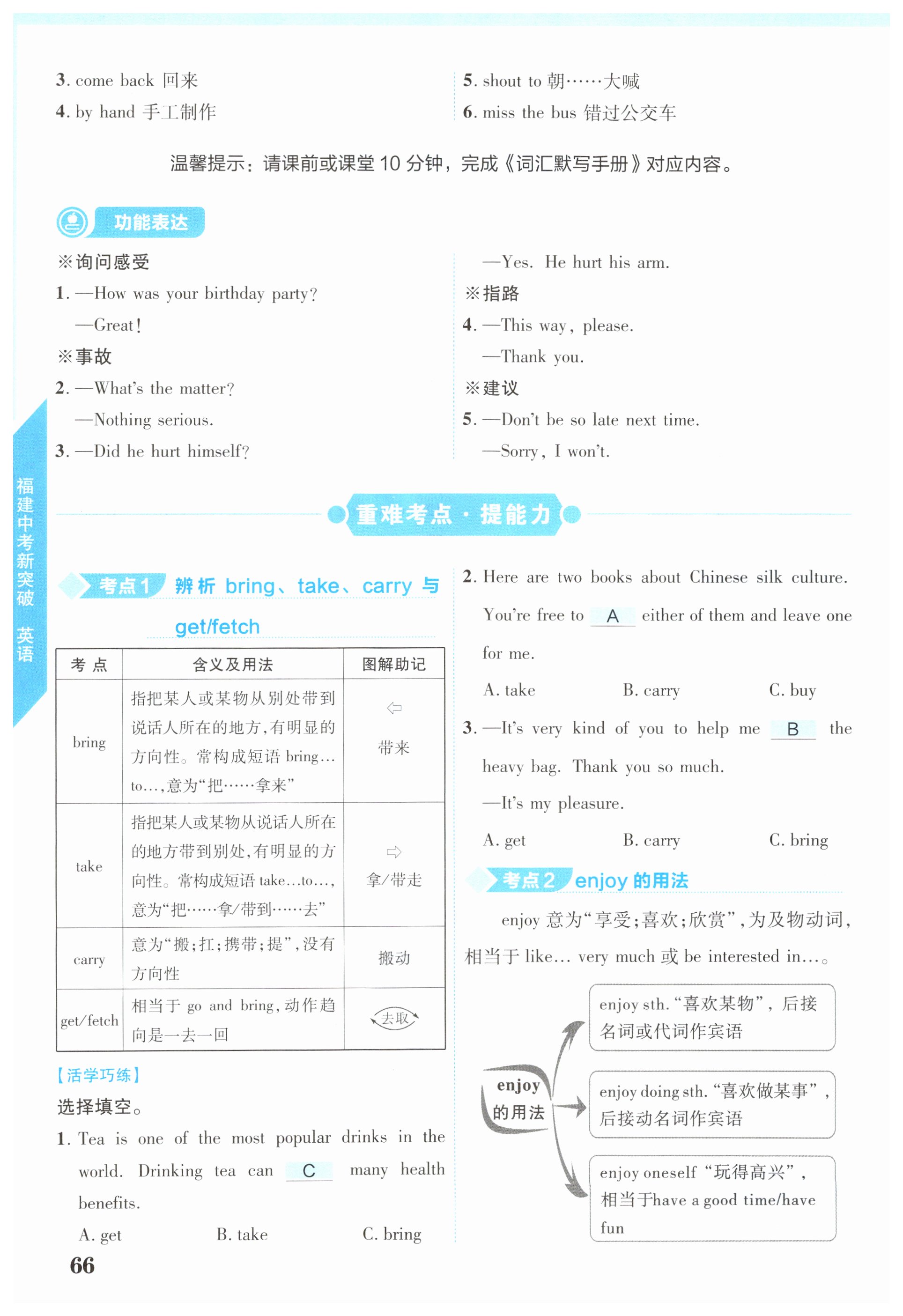 注:目前有些书本章节名称可能整理的还不是很完善,但都是按照顺序排列的,请同学们按照顺序仔细查找。练习册 2025年中教联中考新突破英语福建专版 答案主要是用来给同学们做完题方便对答案用的,请勿直接抄袭。