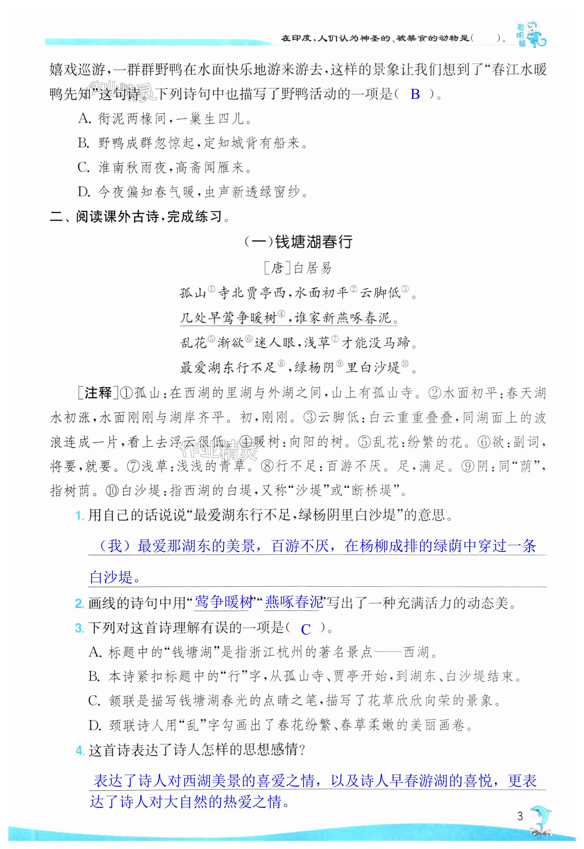 注:目前有些书本章节名称可能整理的还不是很完善,但都是按照顺序排列的,请同学们按照顺序仔细查找。练习册 2025年实验班提优训练三年级语文下册人教版 答案主要是用来给同学们做完题方便对答案用的,请勿直接抄袭。