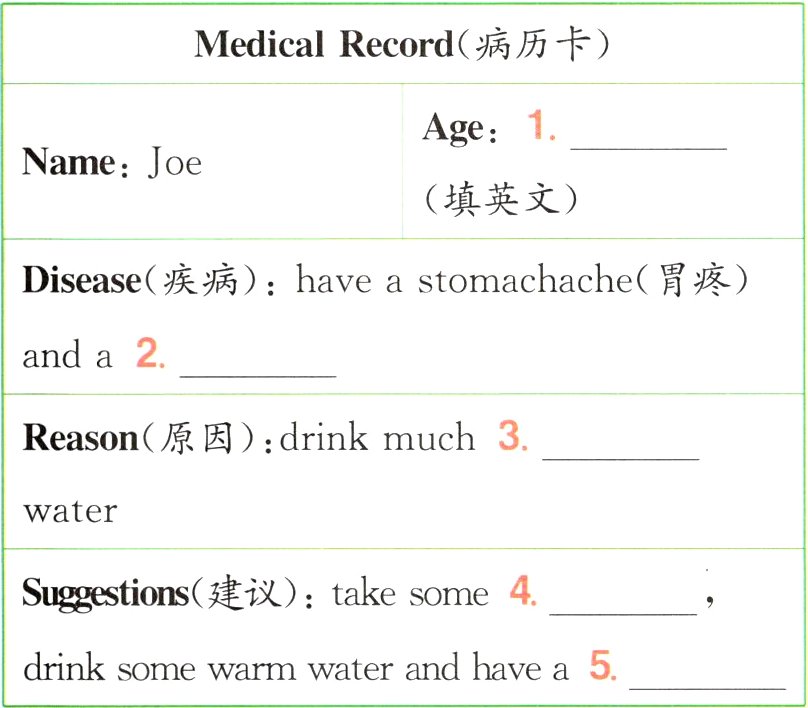 四、听录音,根据所听内容,完成病历卡。(5分)