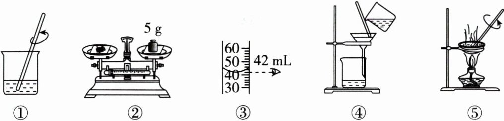 C 点拨:甲实验的步骤是①溶解、④过滤、⑤蒸发,其中除去难溶性杂质的关键一步是④,A错误;甲实验在溶解、蒸发时玻璃棒的作用是搅拌,在过滤时玻璃棒的作用是引流,B错误;乙实验按照②称取一定质量的氯化钠、③量取所需的水、①溶解的步骤进行操作,②中称取的氯化钠的质量为5 g,③中量取的水的体积为42 mL,所配制的溶液浓度为$\frac{5\ g}{5\ g + 42\ g}×100\% \approx 11\% < 16\%$,C正确;乙实验中,若①所用烧杯刚刚用水清洗过,会有少量的水残留,使溶剂质量偏大,会导致配制的溶液浓度偏小,D错误。