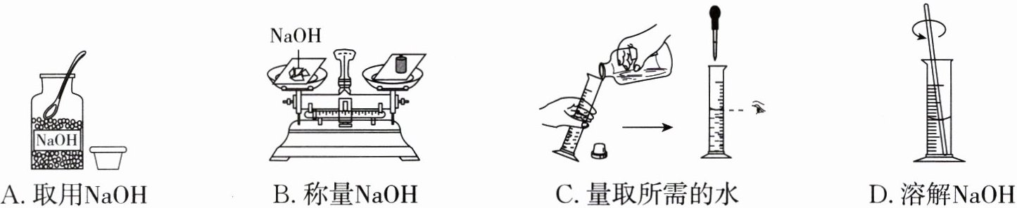 C 点拨:A项图中瓶塞没有倒放,操作错误;B项中氢氧化钠具有腐蚀性,应放在玻璃器皿中称量,操作错误;D项溶解操作应在烧杯中进行,并用玻璃棒不断搅拌,操作错误。