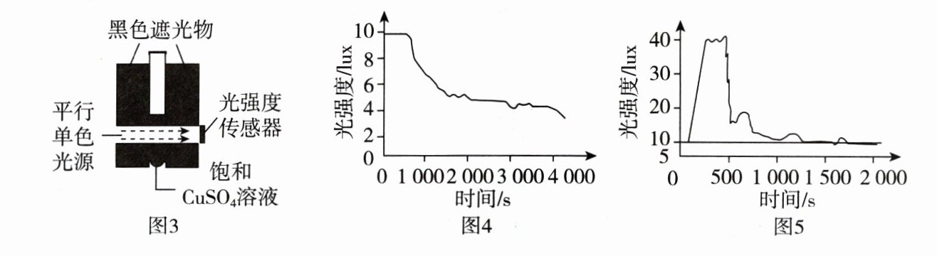 ④在试管b内加入3 mL水并持续测量透过溶液的光线的光强度,复制数据导入软件中绘制“光强度—时间”曲线,如图5所示。