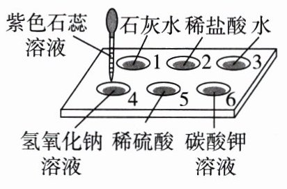 5. 如图所示,在白色点滴板1~6的孔穴中,分别滴加2滴紫色石蕊溶液。