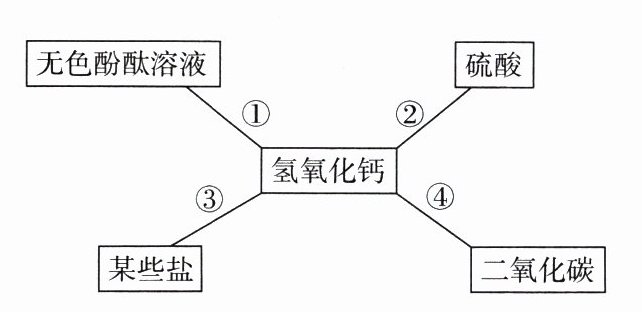 11. 以典型物质为核心,进行问题的设置与整合,是我们全面认识物质性质及应用的有效途径。小王同学用思维导图的形式总结了Ca(OH)₂的四条化学性质,请回答下列问题。