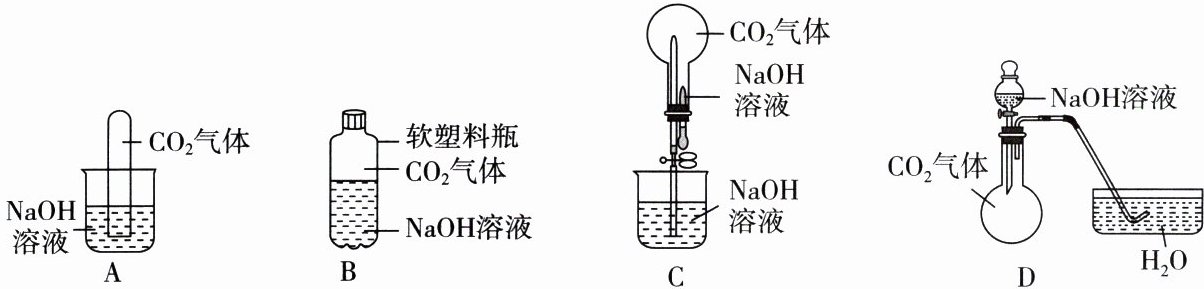 12. 为探究CO₂和NaOH确实发生了化学反应,某实验小组的同学设计了如图所示的四种实验装置,请回答下列问题: