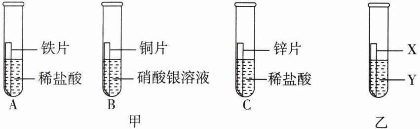 (4)乙同学认为仅仅通过上述实验不足以得出四种金属的活动性顺序,因此在上述实验的基础上,乙同学又补做了一个实验,装置如图乙所示,且实现了探究目的。乙同学的实验中 X、Y 物质分别为 ____________________。