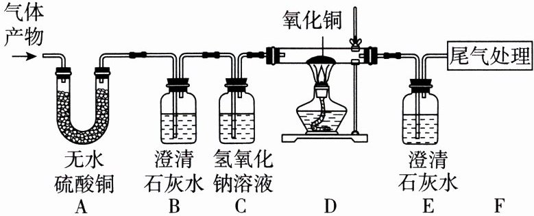 (2)A中无水硫酸铜变蓝,说明气体产物中含有水;B中澄清石灰水变浑浊,说明气体产物中含有__________(填化学式)。