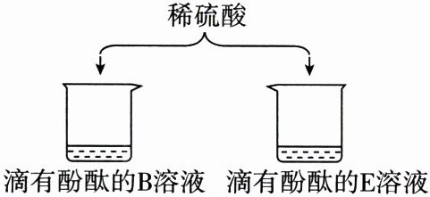 (3)取未鉴别出的B、E溶液各20 g于两个烧杯中,分别滴加2滴酚酞溶液,再分别加入10%的稀硫酸17.5 g(如图所示),并不断搅拌。观察到B溶液由红色变为无色,E溶液仍为红色,则E为________(填化学式)溶液。