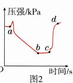 10. 用图1所示装置进行实验,先后将溶液快速全部推入,测得一段时间内压强变化如图2所示。
