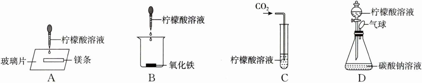 D. 锥形瓶中有碳酸钠溶液和柠檬酸溶液