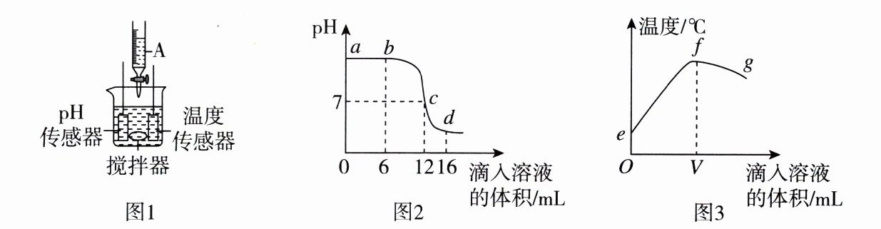 6. 某同学利用图1装置研究稀硫酸与氢氧化钠溶液发生中和反应的过程,并用pH和温度传感器测量反应过程中相关物理量的变化情况,得到图2和图3。