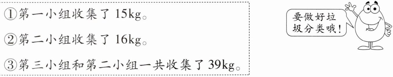 分析:第三小组和第二小组一共收集的质量 $\bigcirc$ 第二小组收集的质量 = 第三小组收集的质量。