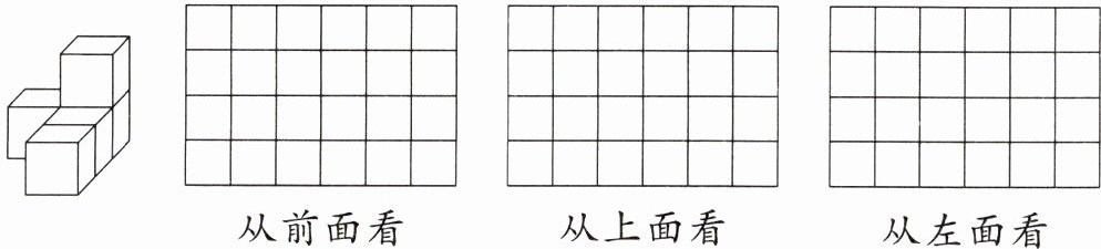 3. 优优用4个小正方体搭了一个物体,从前面、上面和左面看到的图形如下。[★★]