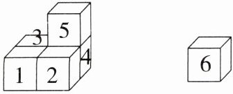 ,聪聪已经搭了5块(如图),接下来把6号小正方体放在( )号的( )面,就可以得到想要的模型。[★★★]