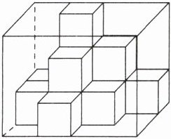 (2)至少添上( )个小正方体后可以补全为长方体。