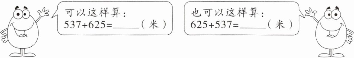 我发现:两个数相加,交换两个_____的位置,_____不变。这叫作加法交换律。用字母表示:$a + b =$_____ + _____。