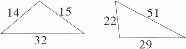 3. 轩轩测量了两块三角形地,测量的结果如图所示(单位:m)。优优看了测量的数据,说:“你的测量有误。”想一想,为什么优优没有测量就知道轩轩的测量有误呢?[★★]