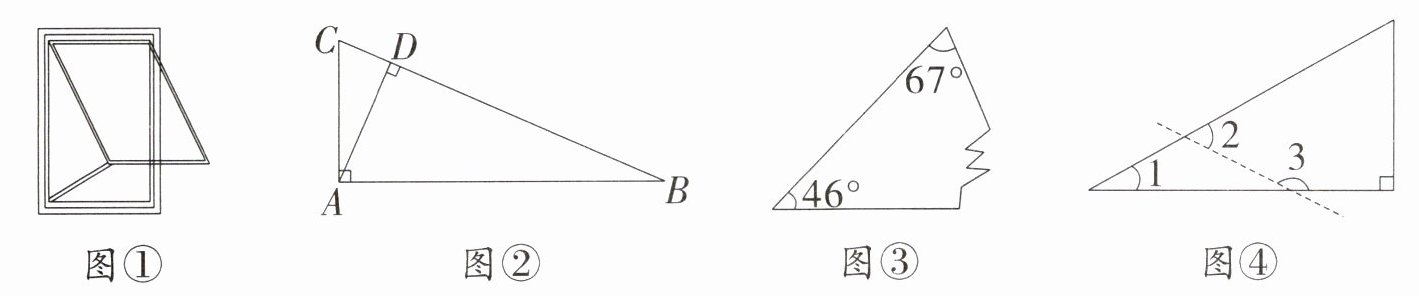 (1)如图①,用一根钢条将一扇打开的玻璃窗支撑起来,这样风就不易吹动窗户,这里运用的原理是()。