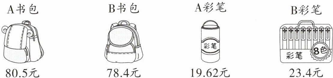 他应该买B书包和A彩笔