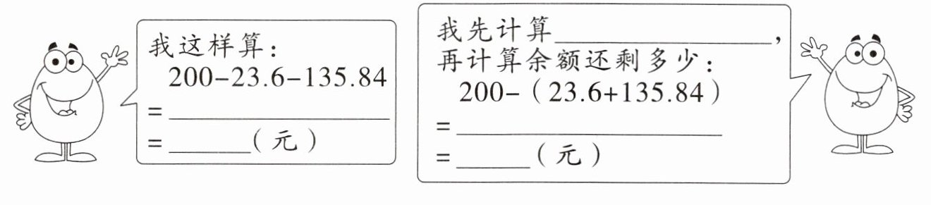(2)妈妈的手机钱包里有200元,缴了水费和电费后,发现余额不够缴燃气费了。你知道手机钱包里余额还剩多少吗?
